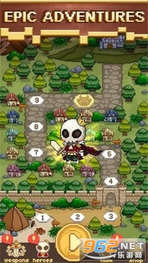 《骷髅骑士像素》是一款像素风格游戏,控制骑士进行冒险,保护公主的安全,在有限的回合中击败敌人,升级武器和等级,根据自己的性格解锁不同的皮肤,非常不错的装备打造和骑士养成玩法,感兴趣的来下载吧。