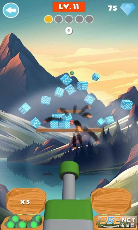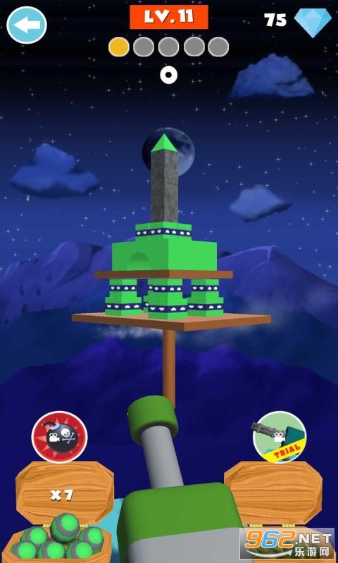 这是一款相当NICE的大炮射击闯关游戏,加农炮的威力还是很不错的,并且能够射很远,有效射程相当不错,就算我们离敌方堡垒非常远,也可以不用挪动炮台,直接在远距离射击命中,完成摧毁堡垒的挑战。