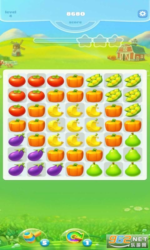 其实大多数的关卡还是很简单的,我们可以很轻松的完成消除任务,大面积的消除农作物还能看到满屏炸裂的特效,这些特效再加上清爽舒适的游戏画风,一定能为你缓解压力。