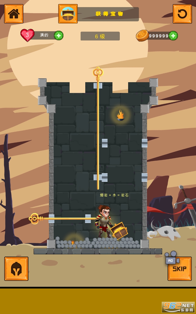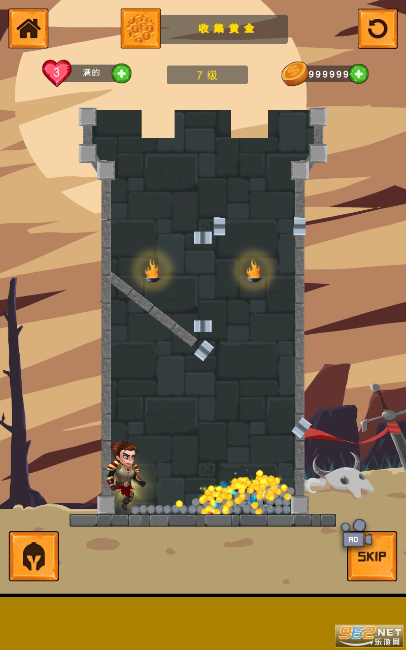 是一款英雄狩猎类手机游戏,游戏中玩家要击杀龙、龟和怪物,最后寻找到金盒通关,游戏中的空间是由几根别针分隔开的,玩家扮演一个小小英雄,你要去消灭这些怪物通关。