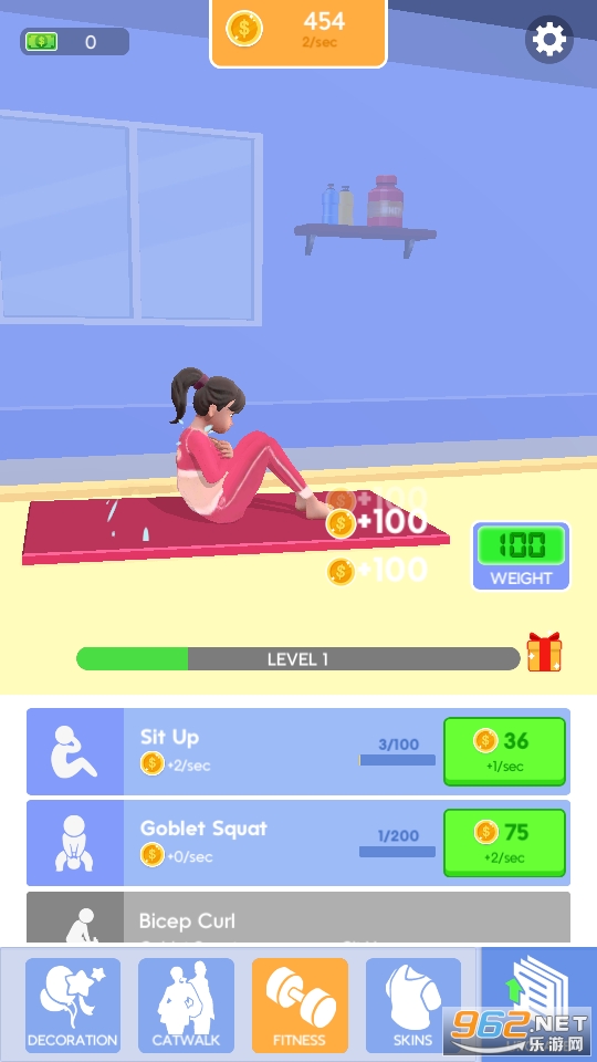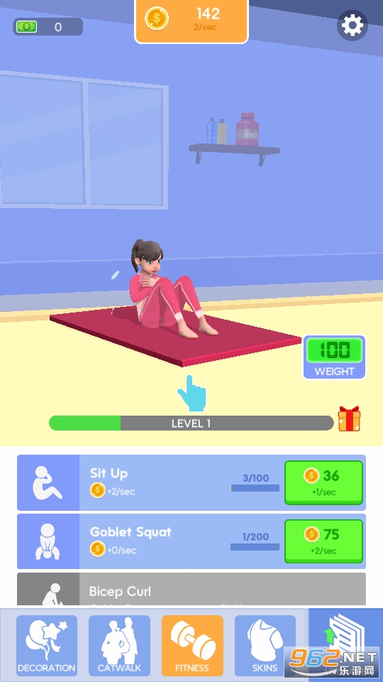 放置点击玩法的一款以健身锻炼为核心的休闲游戏,玩家可以自己选择角色的性别以及肤色开始你的冒险,通过完成各种运动来减肥,快来下载体验吧!