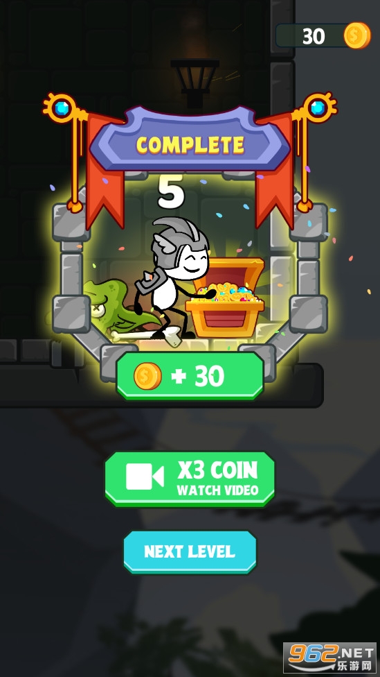 通过后获得大量金币奖励,不看广告直接获得三倍