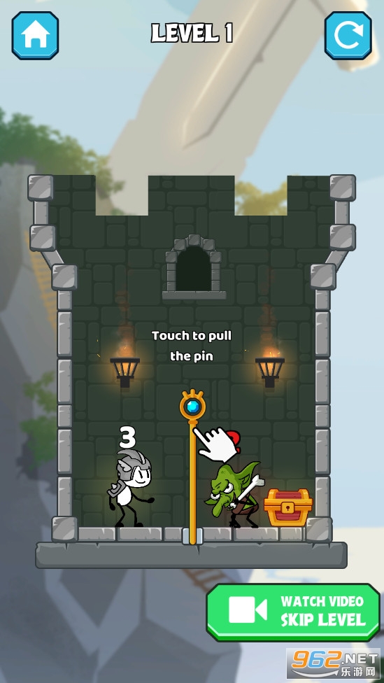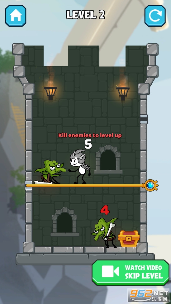 《火柴人传奇骑士无限金币》是一款拉针游戏玩法的策略闯关游戏,在游戏中邪恶的公主被魔怪们给掳掠走了,而你接到了国王的指派任务前往未知的魔塔进行闯关挑战。每当你拉动别针之后,你的火柴人骑士就会与敌人进行战斗,并成功将其中的敌人全部击败,拯救出公主!
