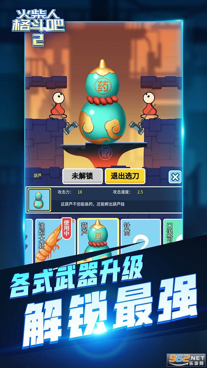 《火柴人格斗吧2》是一款魔性虐心PK对战小游戏。在这个游戏世界中,你需要不断合成你的新英雄,锻造你的新武器,在这个过程中,解锁新世界的大门吧!真实打击特效,魔性游戏体验,虐心手感操作,更有章节模式+排位模式挑战你的游戏神经,一起来体验吧!