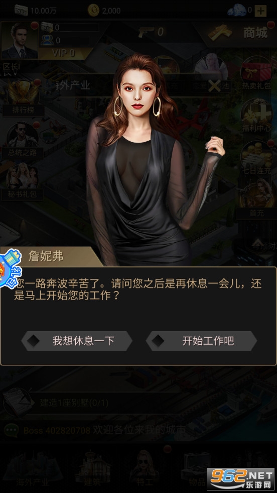 《壕情帝国安卓版》是海南达达兔网络科技有限公司推出的一款画面精致的模拟经营手游,有着众多不同的男女角色可以选择,游戏中玩家最开始扮演一个区长去冒险,可以招聘美丽的秘书为自己服务,可以在自己的领地建造别墅、商业大楼、军工厂等,不断的发展自己的经济与军事。