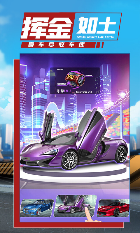 获取各式各样的传奇超跑,丰富您的车库,让您体验极致奢华的生活。