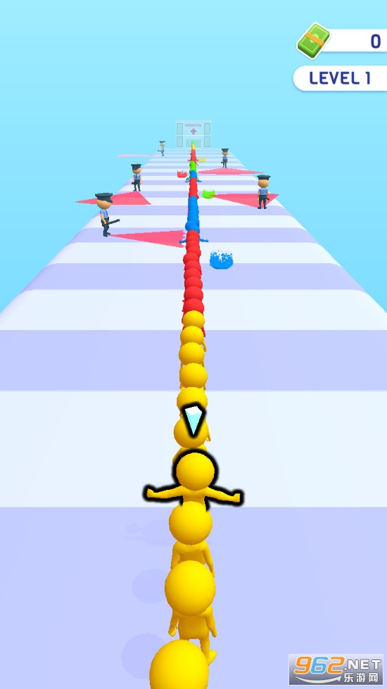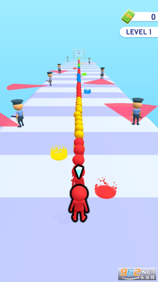 插队的闯关游戏,橡皮人经过路上一些颜料堆可以变换自身的颜色,你只能插入与自己颜色相同的队伍,如果插入到其他颜色队伍会被其他人踢出来,如果被巡逻保安发现会被打一顿,喜欢的朋友可以下载试试。