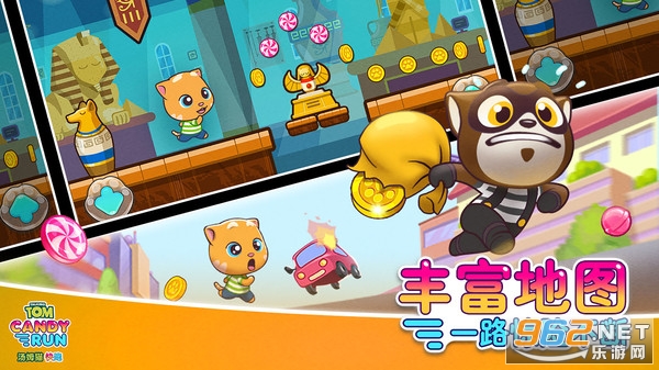 汤姆猫炫跑是一款横版2D跑酷冒险游戏,玩家通过操控角色跳跃、滑动、连跳,在各种各样的地图里拾取金币和糖果,躲避障碍,获得更高的分数和奖励。想玩的话就赶快来下载吧。