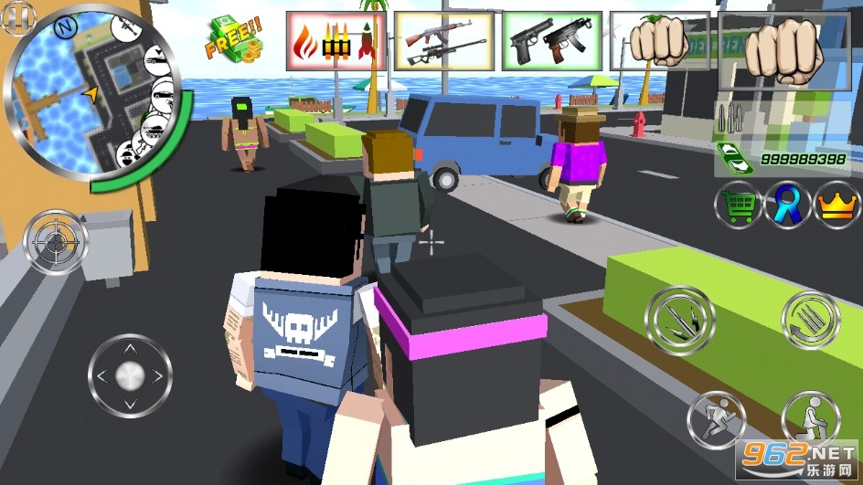 《方块人犯罪啦》是一款自由度极高的像素方块冒险游戏,你就是这座城市最大的威胁,是最大的恐怖分子,无限的货币能让你在商城中尽情的购买自己想要的武器,解锁各式花样的武器装备武装自己,在城市的街道或者码头尽情的犯罪,干掉警察或者行人,没有人能阻止你。