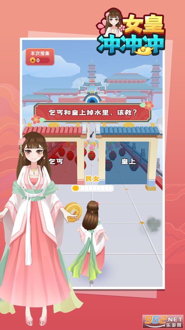 《女皇冲冲冲游戏》是一款玩法很有趣的趣味休闲跑酷类游戏,整体的玩法还是很有趣的哦,玩家们快速的灵活的滑动手指左右的滑动来躲避路上的障碍物捡取更多的奖励即可,感兴趣的亲们赶紧下载吧。