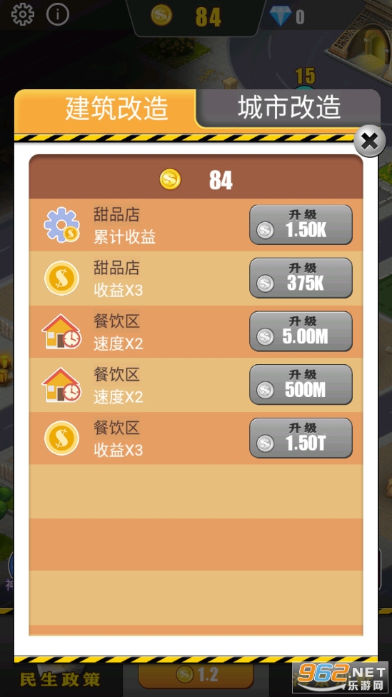 升级建筑,获得更多的金币解锁建筑和街区。