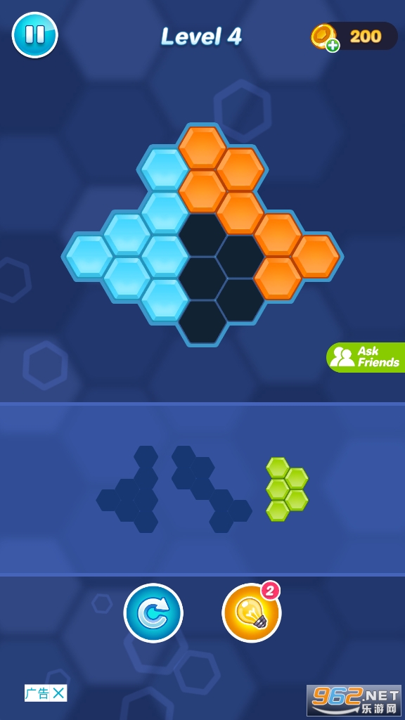 《六边形拼图大师最新版》是一款拼图益智游戏,玩家利用底部出现的方块来完成六边形的拼图,需要仔细观察,越到后面越难,来尝试一下吧。