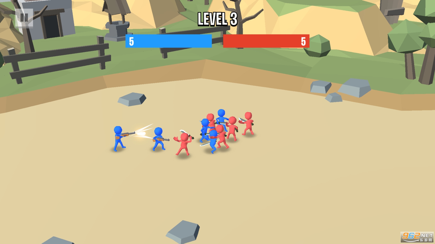 相同等级的士兵可以合成一个更强大的作战士兵,而在你挑战完成第三关之后每一轮关卡,你的火柴人作战小队当中会增加一名步枪兵。同样的步枪兵+步枪兵之间合成可以成长为火焰兵,火焰兵的武器拥有群体灼烧的效果,面对更多敌人的时候能够发挥出奇效!