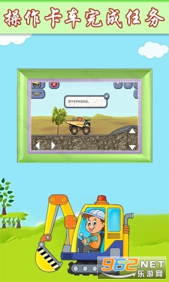 4、一款驾驶工程车去工地开工的儿童游戏,卡通场景展现工地的繁忙