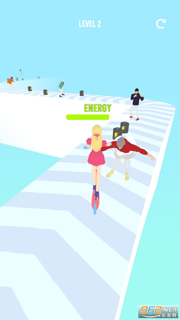 《滑板车小姐姐》是一款小姐姐玩滑板车的游戏,关卡设计很巧妙,完成一系列的动作,躲避碰到的各种障碍物和坏人,你可以击倒他们,你是有血条值的,防止自己被他们击倒,来优雅的玩滑板车吧。