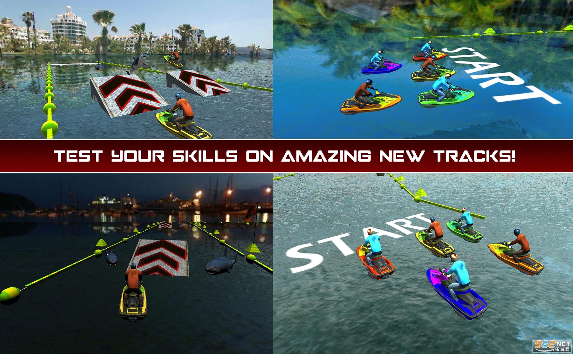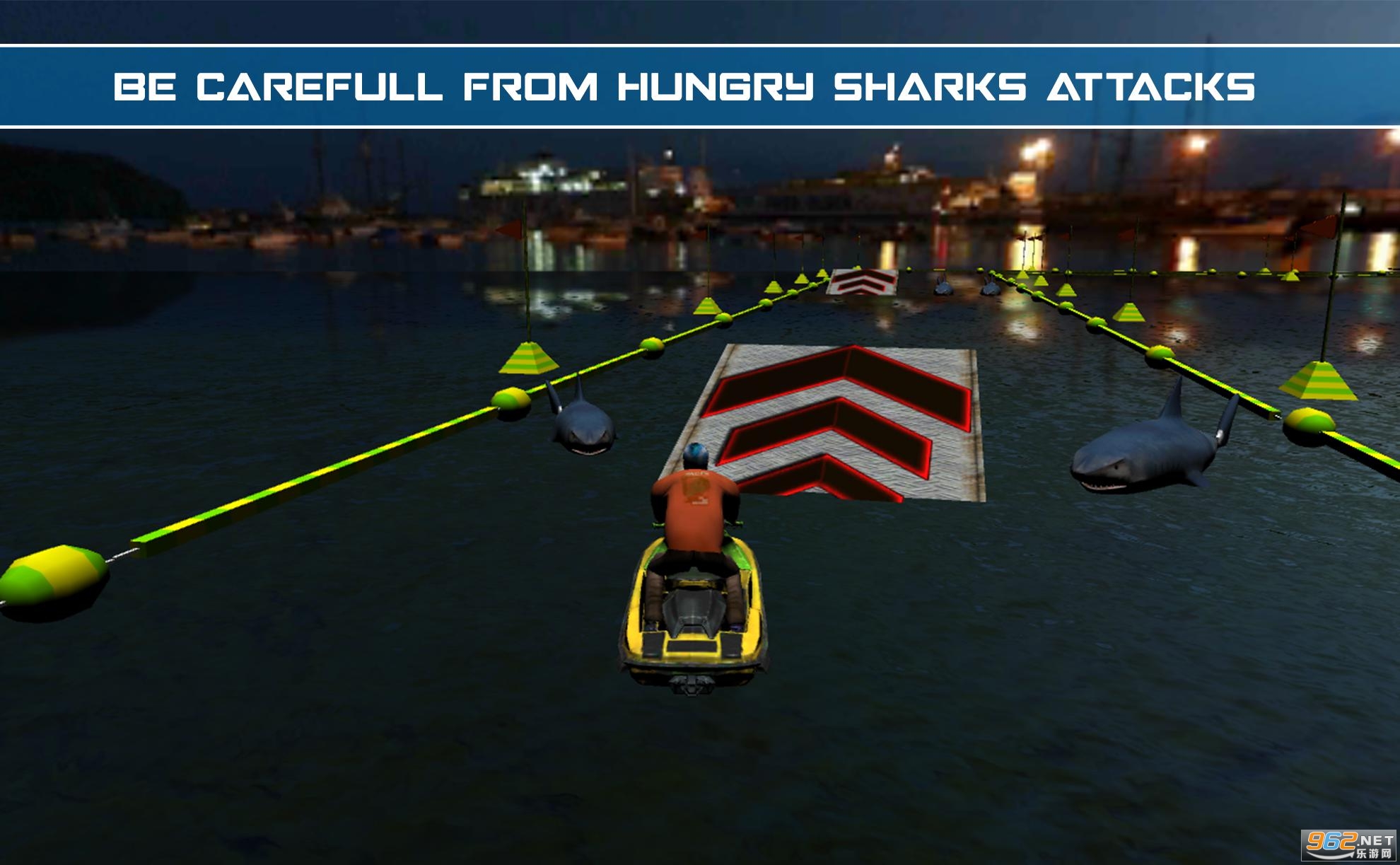 1、有疯狂的摩托艇驾驶挑战赛和疯狂的驾驶体验强大的摩托艇水上冲浪赛车3d。
