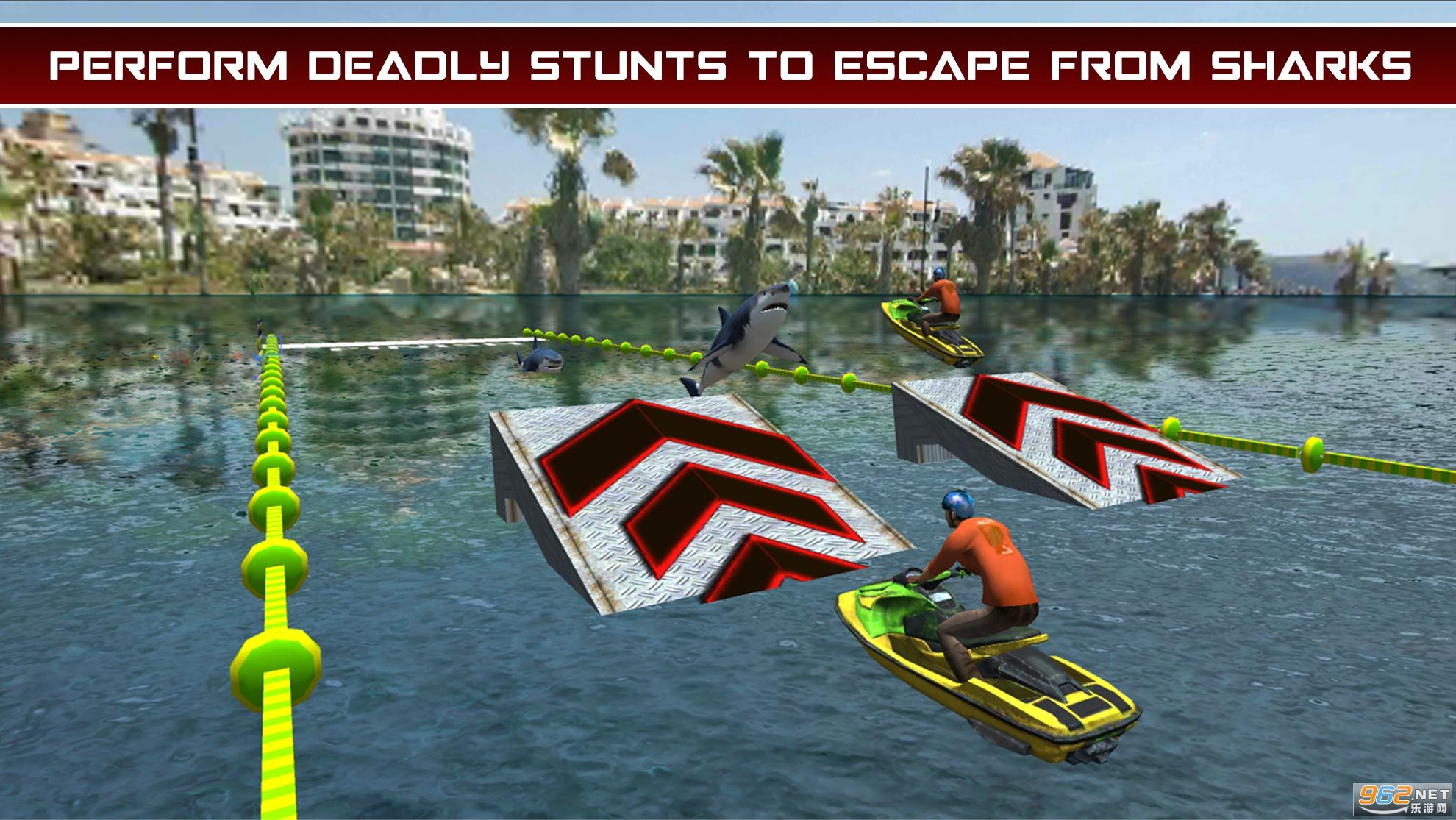 2、表演疯狂的水上特技,逃离鲨鱼的攻击,跨越如此多的障碍和危险的海浪。