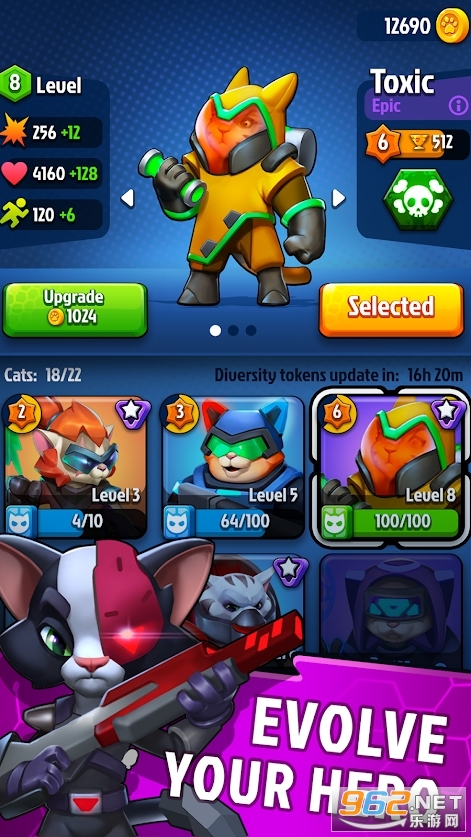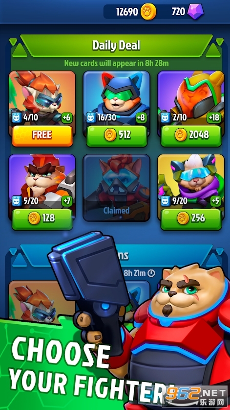 · 多个猫科动物角色已准备好加入战斗——赢得并收集积分以打开它们;