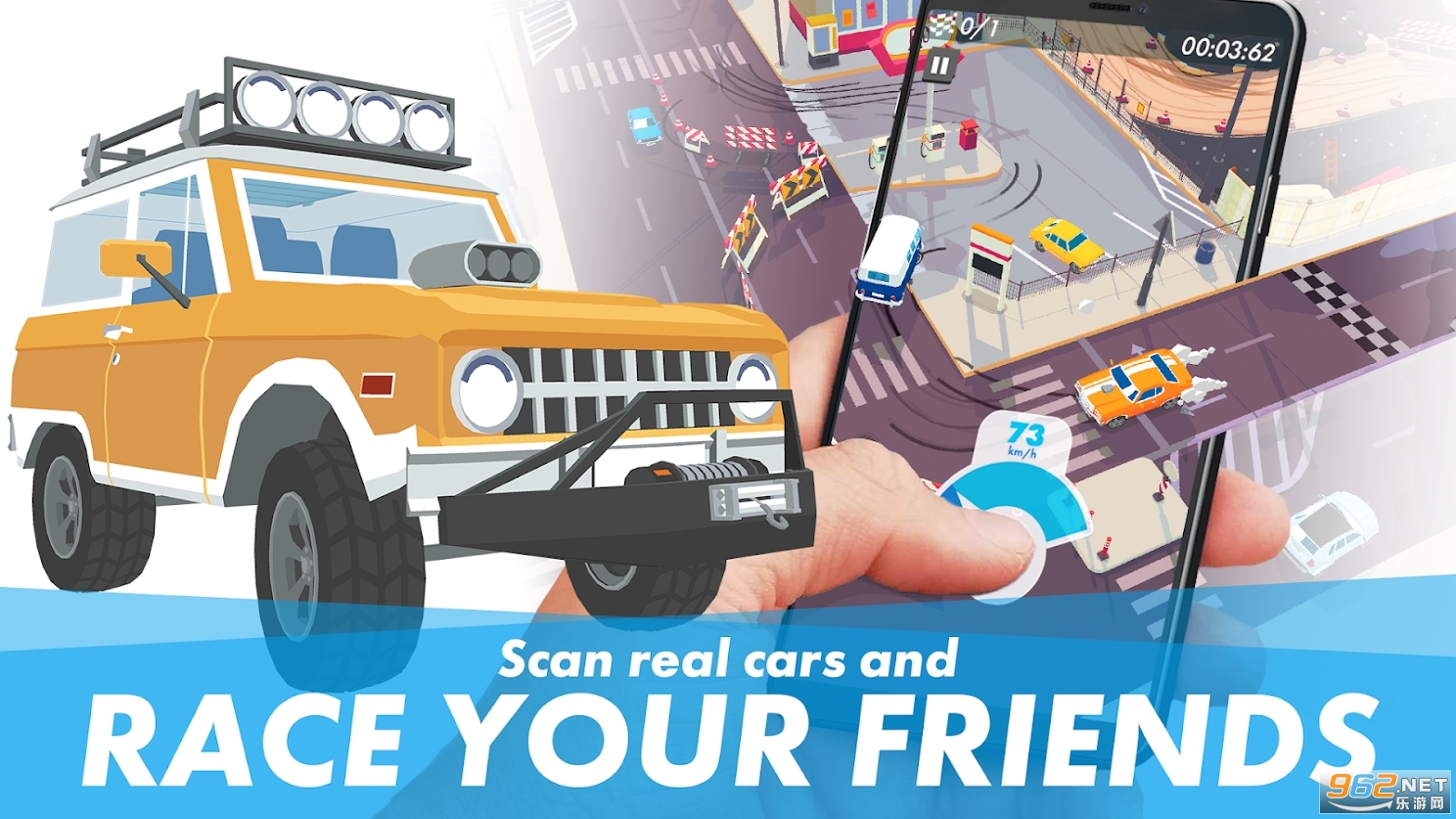 与您的朋友在三种类型的赛道上进行正面交锋:城市,越野和运动。每个轨道的设计都旨在突出显示不同类型的汽车,因此请确保扫描尽可能多的汽车。