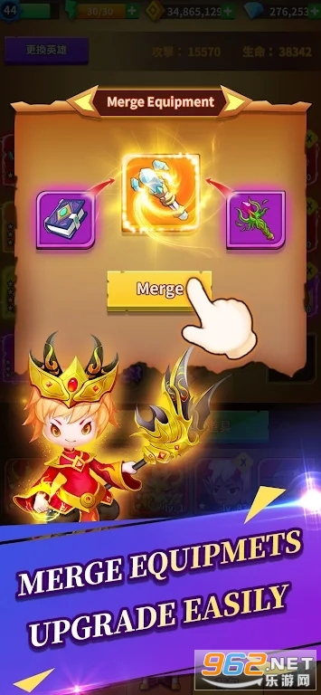 -随机掉落丰富的装备。合并即可获得传奇装备!