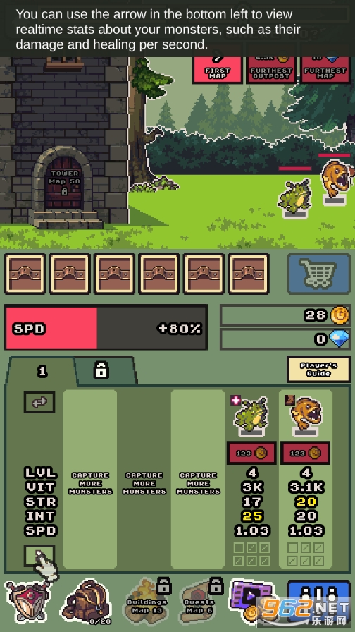 1.像素风格塔防战斗冒险游戏,丰富多样的怪物收集抵抗黑暗的入侵。