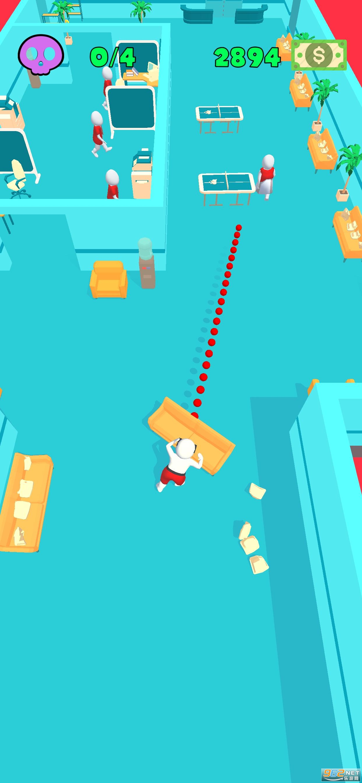 在这款游戏中大家可以毫无保留的发泄出来,疯狂砸东西,将心中压力释放,但是也要小心同事们联合老板一起来攻击你,寻找桌子、门、墙壁这些掩体,尽量不要被攻击到。