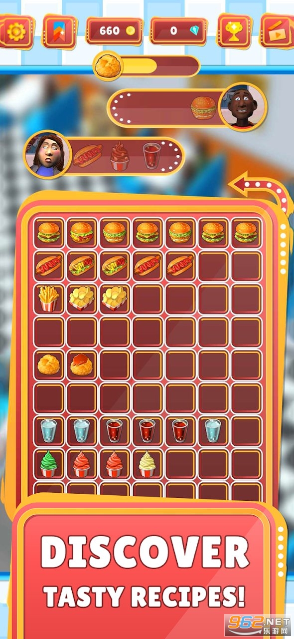 欢迎来到 Diner Merge - 世界上最令人兴奋的烹饪合并游戏!只需拖放即可组合美味的食物,制作精美的汉堡、薯条等。每个客户都会有一个自定义订单,所以要尽快让他们满意以获得最大的提示!