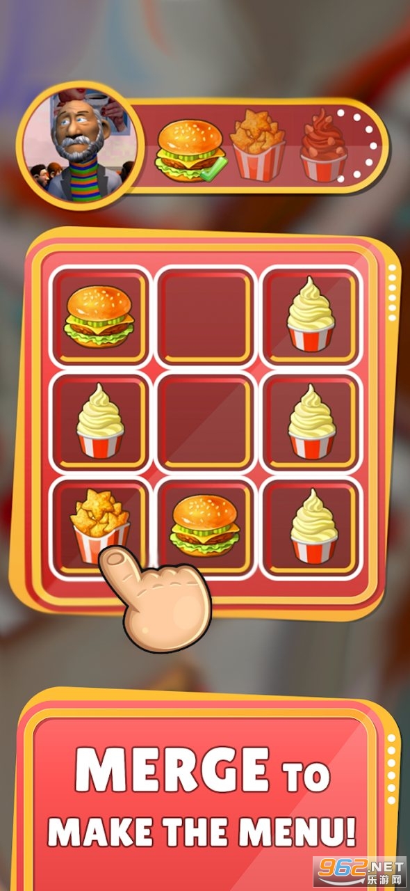 一款有趣的休闲合并游戏,游戏的操作简单容易上手,玩家将合并各种各样的美食来完成烹饪,每个客人有着不同的订单需求,游戏中你可以通过拖动来进行合并,招待更多的客人,推荐给喜欢休闲游戏的玩家。