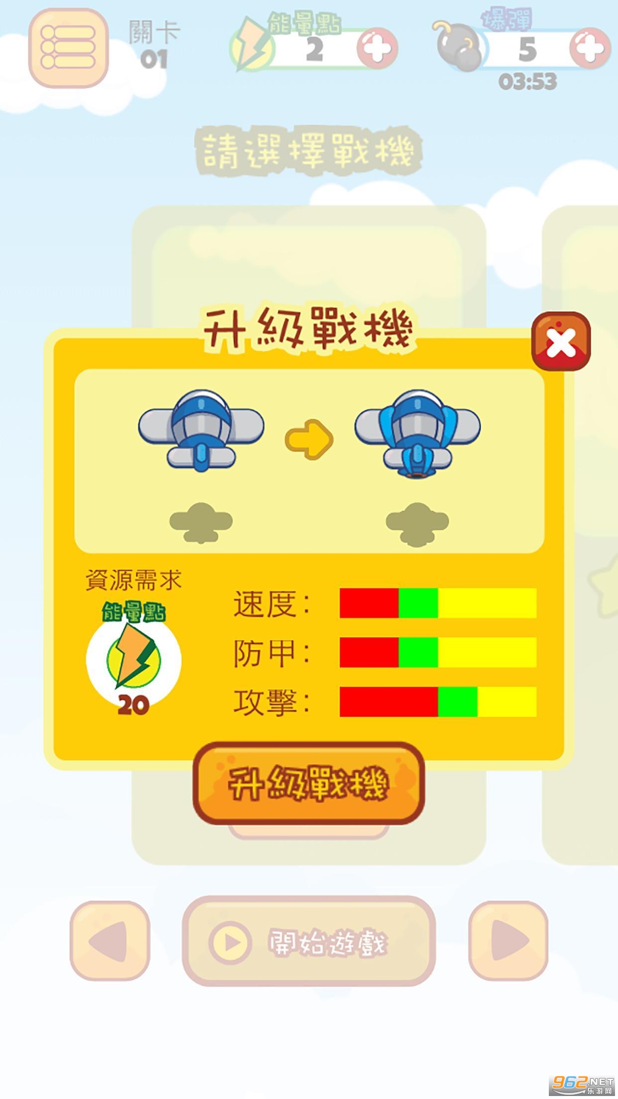 2.每架战机都有三个等级令你不断强大。