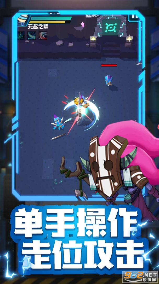 通过单手控制走位和距离,释放技能招式。升级不同的天赋,解锁不同的技能。搭配不同的核心,培养独创的流派,面对强大的boss,展现你的实力,消灭它们成功完成副本。
