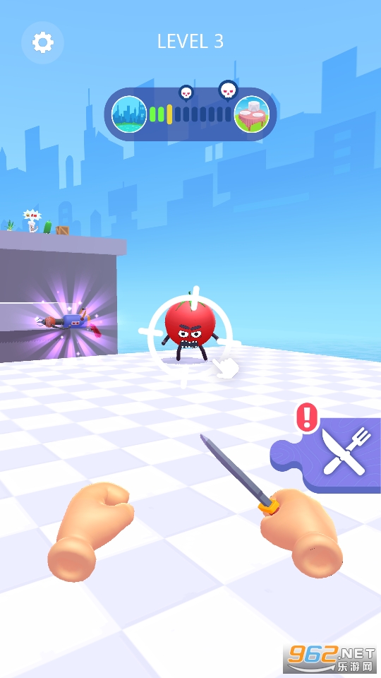 阴险的水果及蔬菜决定报复厨师,并将他们当作人质。你的任务就是解救他们!抛掷刀具、大砲射击、扫除障碍,并解救他们吧!但当心点:在游戏当中,你也会面对许多强壮又非常危险的大魔王!抓起你的刀具,挺进战斗吧!