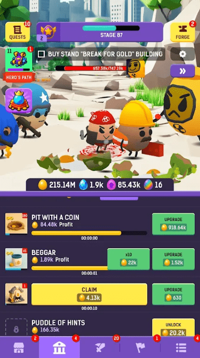 在这个游戏中,你不仅可以战斗,还可以建立自己的奇幻世界。发展你的基地,升级建筑,收集资源来强化你的英雄和神器。你的基地反映了你在这个疯狂的蛋奇幻宇宙中的力量!