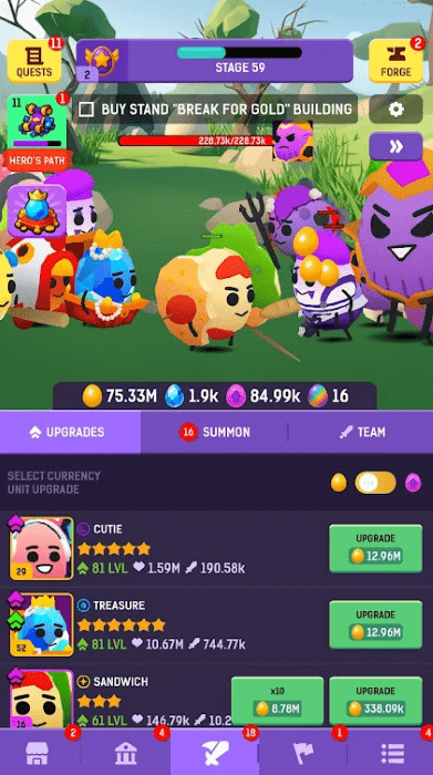 组建蛋之国最强大的团队。每个英雄都有独特的能力和可升级的技能。从怪物战斗到首领冲突,为不同的战斗创建完美的阵容。升级您的战士,升级他们的装备,并通过深入的多层进度系统释放他们的真正潜力!