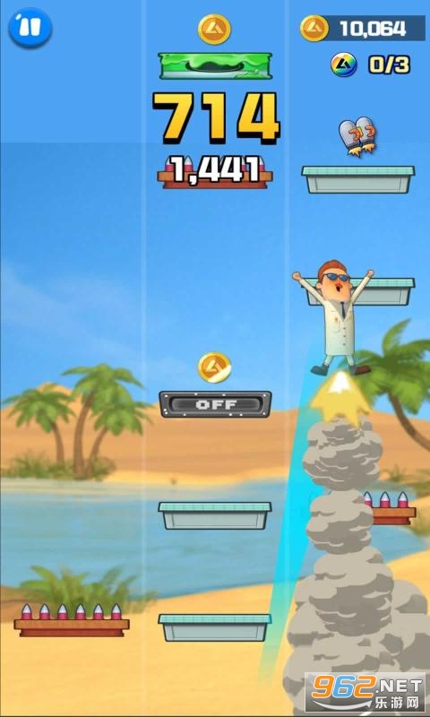《玛卡和罗尼Maca&Roni》是一款竖版向上跳跃的闯关游戏,易于操控的跳跃闯关游戏,在游戏中玩家需要操作自己的卡通角色不断向上跳跃,因为方块平台会不断下降,我们只有不断向上跳跃更换新的方块平台才能保命,大家长时间游戏闯关可能会手酸,所以要注意休息哦!