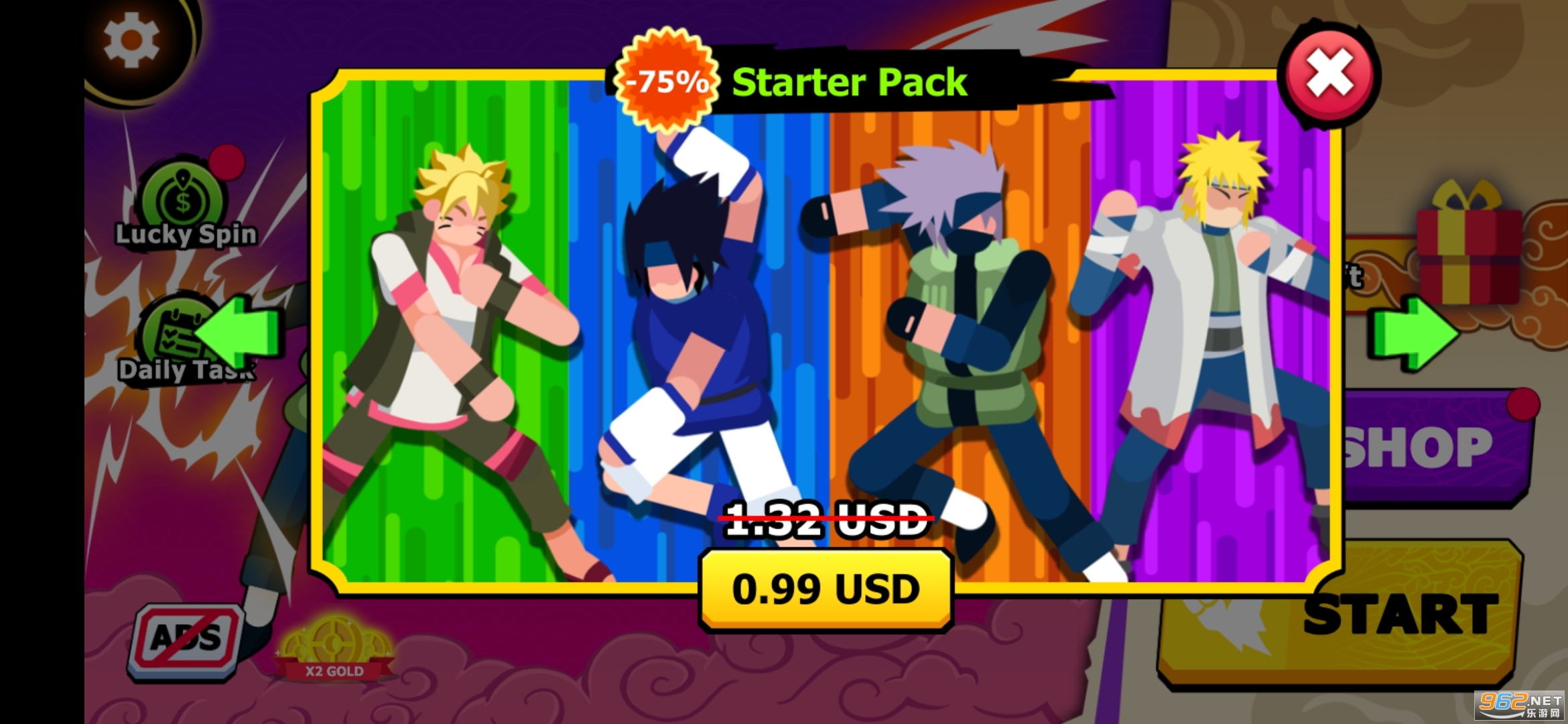 3、火影忍者火柴人格斗不同角色之间的实力打斗差不多,对玩家操作的考验更多。