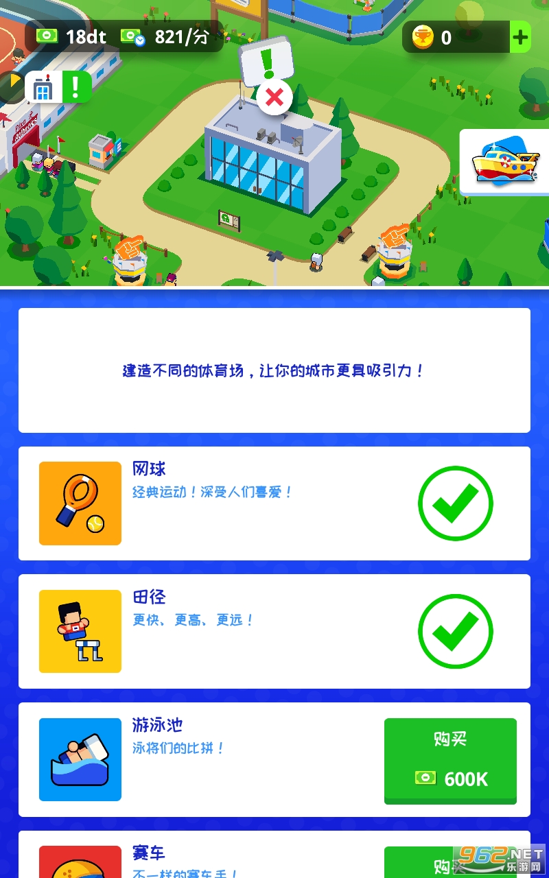 总体来说是一款非常不错的放置经营模拟类的游戏,游戏的玩法还是很简单的哦,玩家们简单的点击在不同的场景中建设不同的体育城即可,用来打发时间的小游戏,喜欢的亲们赶紧下载吧。