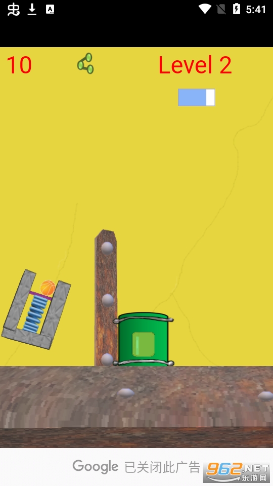 制作的非常简陋,玩起来也很简单的一款休闲游戏,玩家在游戏中需要对距离和弹跳进行预判,让小球能够精准的掉进桶中,升级之后还会添加各种障碍路径哦。