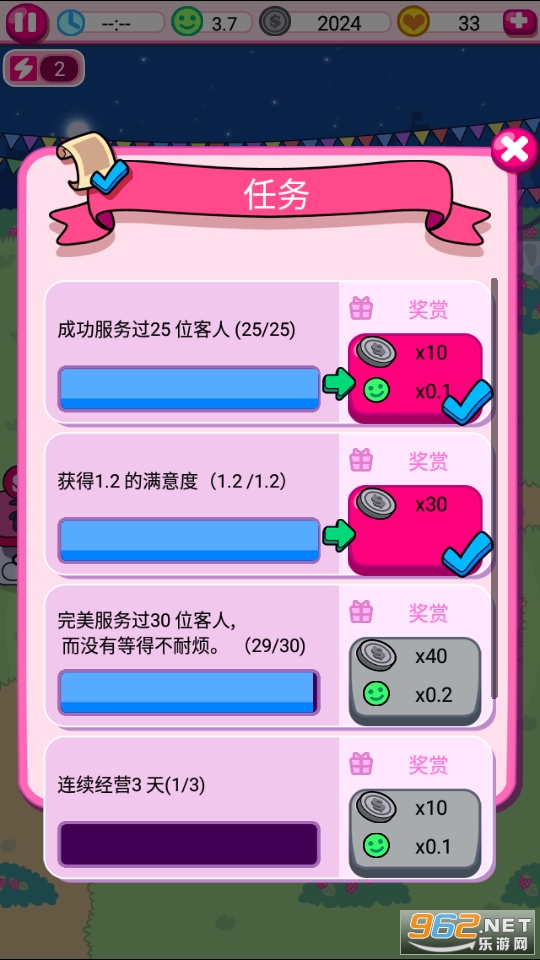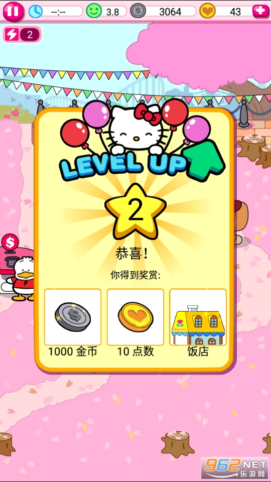 持续玩《HelloKitty嘉年华》以便升级,每次升级都会解锁新的景点,让你吸引更多客人.