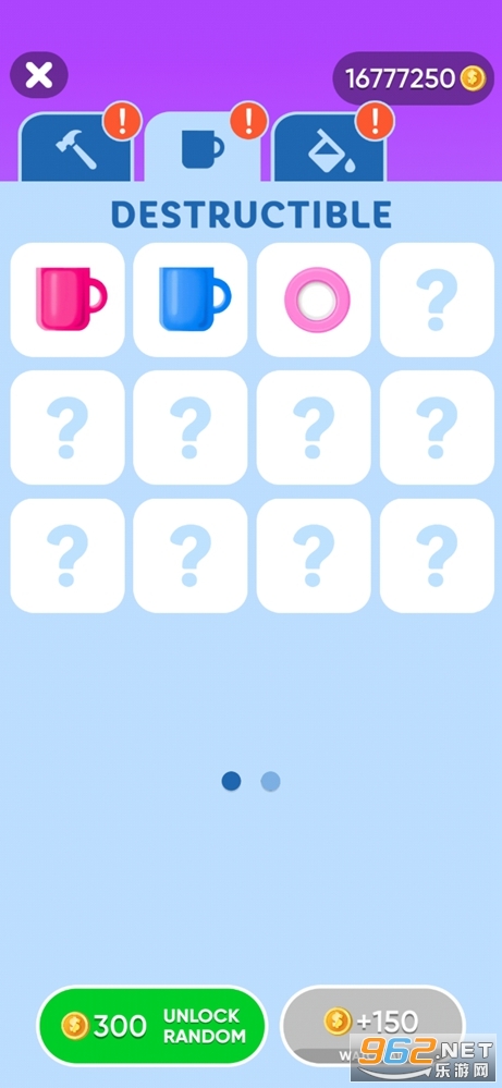 1、精致投掷将所有物品砸碎,收集金币解锁全新的角色皮肤和工具