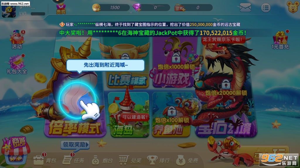 《捕鱼海岛最新版》是一款全新上线的手机赚钱捕鱼类手游,简单的游戏玩法,在这里玩家可以体验一边玩游戏一边赚钱的完美体验,刺激的捕鱼游戏玩法,轻松的游戏体验,感兴趣的老哥快来962下载体验吧!