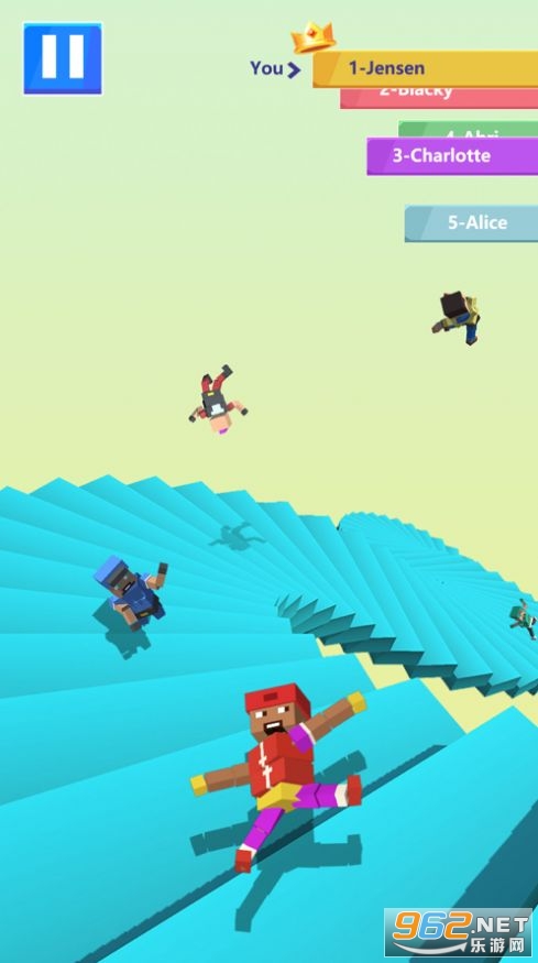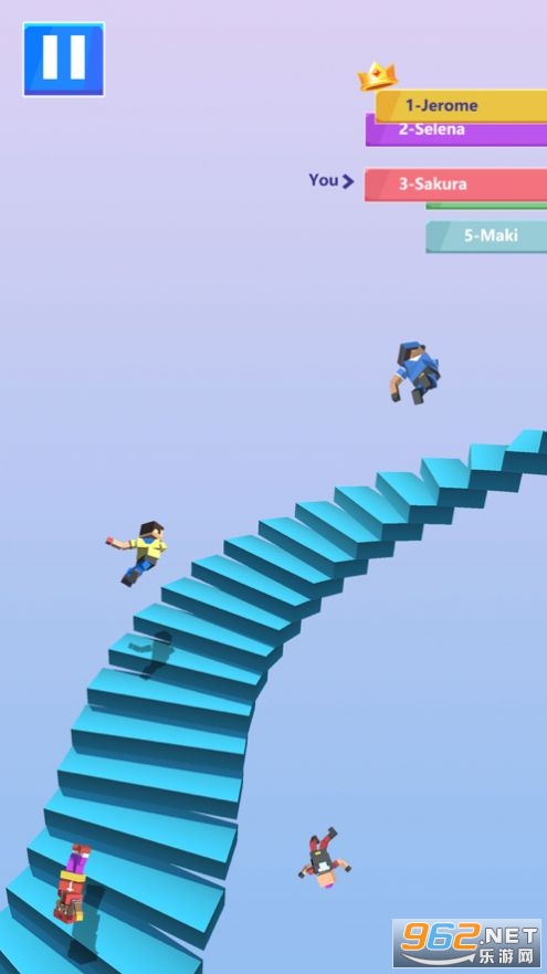 1、和其他的玩家一起来比拼你们的速度和耐力,能够坚持你们的下楼速度。