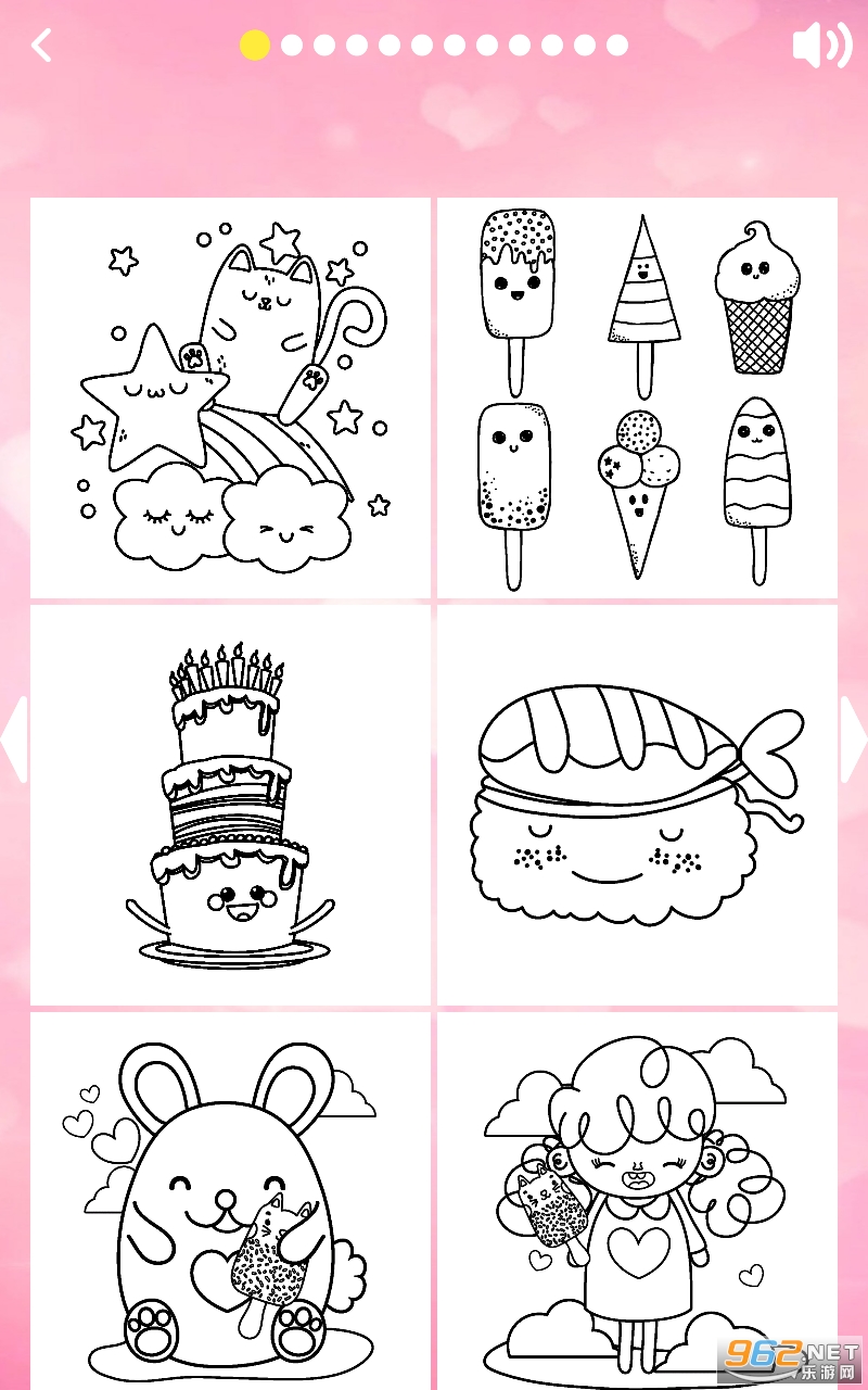 2、满满的二次元卡哇伊涂色页、独角兽、美人鱼、喵星人、公主、城堡,玩着玩着秒变闪亮小仙女。