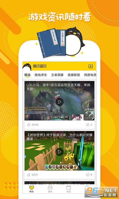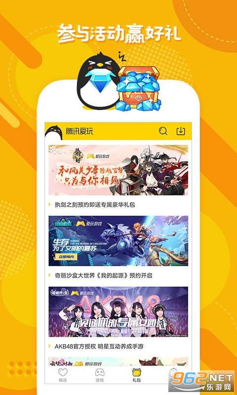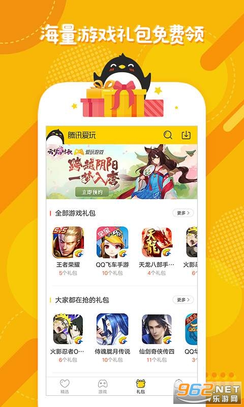 《腾讯爱玩官方版》这是一款由腾讯推出的游戏辅助助手手机软件,该软件拥有所有游戏礼包免费领取,还有该软件汇聚了所有的最新游戏咨询在线查询,新游戏热门游戏都可以一键下载!更有最新游戏免费预约抢先体验哦!