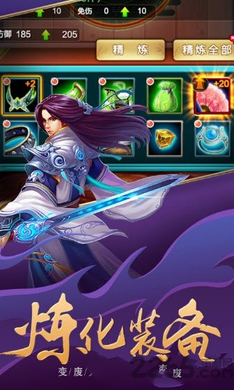 游戏中装备可以进行精炼、加星、镶嵌宝石。每一次强化都能为玩家带来一定的实力提升体验升级的快感。获得的装备还可以萃取然后锻造成你需要的强大装备!