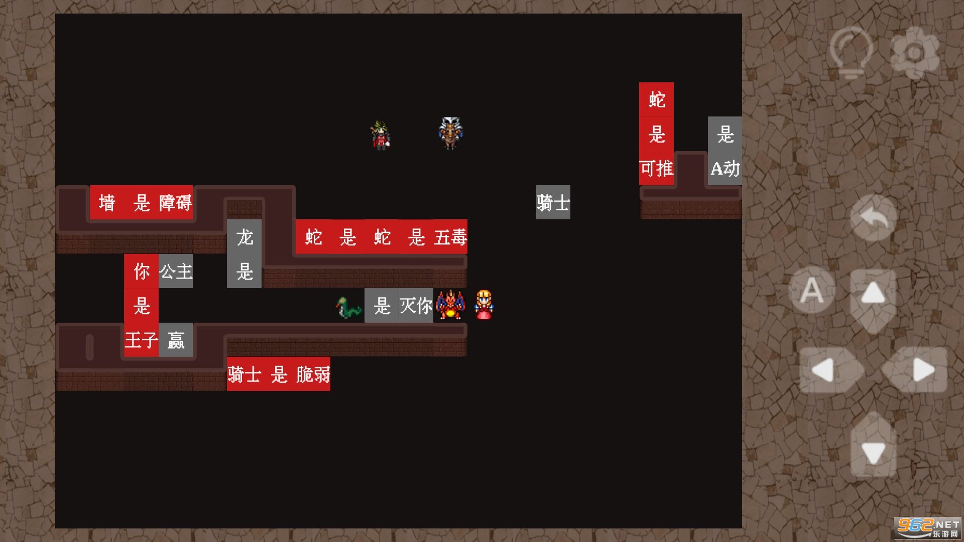 这是一款益智解谜游戏。所有规则由文字块组成,你可以随意组合拼接,从而改变规则。