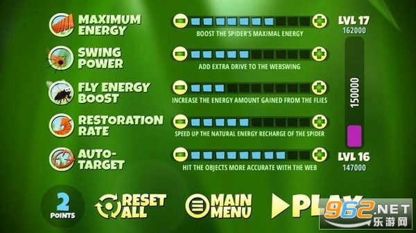 这款游戏的画面十分出色,简约朦胧的草丛,壁纸一般的享受。玩法超级简单,玩过《绳索飞人》的都懂,点击屏幕上的草尖,让蜘蛛丝黏住,利用摆荡的惯性不断前行。如果被高高抛起,还能吃到空中的蚊虫,加快速度。蜘蛛可以升级,并且有多个蜘蛛造型可以解锁,很好玩。