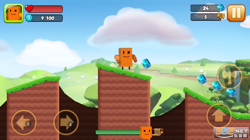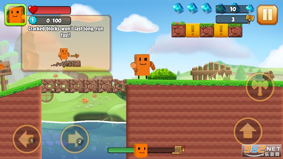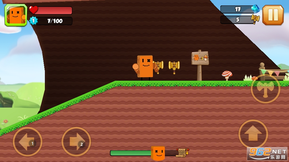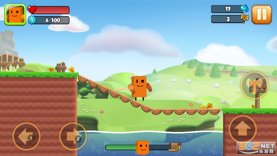 非常好玩的跳跃闯关类的跑酷休闲游戏,左边控制角色的方向,右边进行跳跃,和超级玛丽的玩法比较类似,还可以用武器进攻敌人,快来完成每一关的挑战吧!