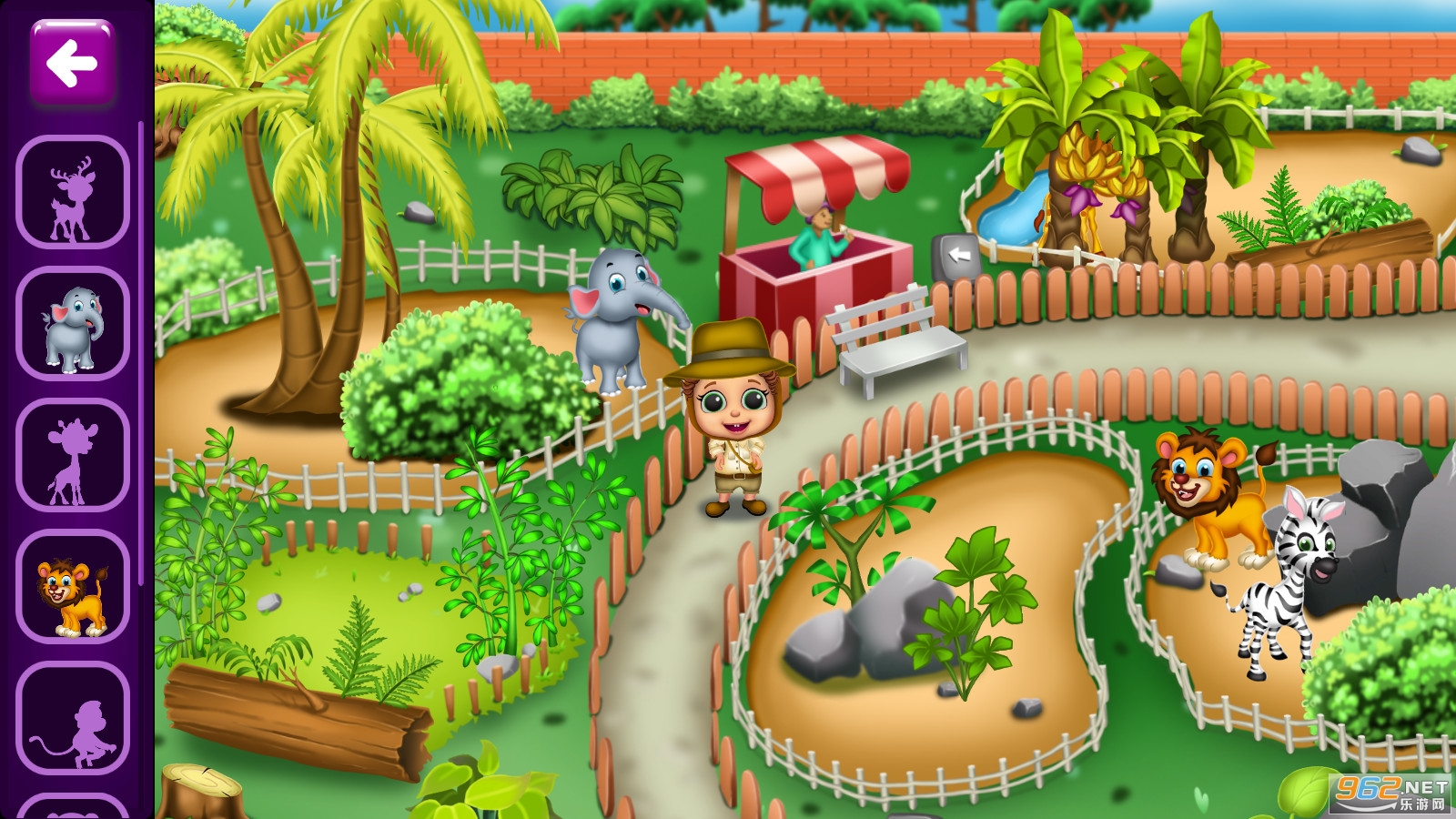 很有意思的一款启蒙教育游戏,选择不同的地图之后,你的人物穿着打扮以及当地的文化特色、风土人情也会有所展现。如果你选择的时候动物园的主题,那么你的人物也会穿着动物管理员的服饰去进行捉迷藏游戏体验,总之非常的轻松休闲!