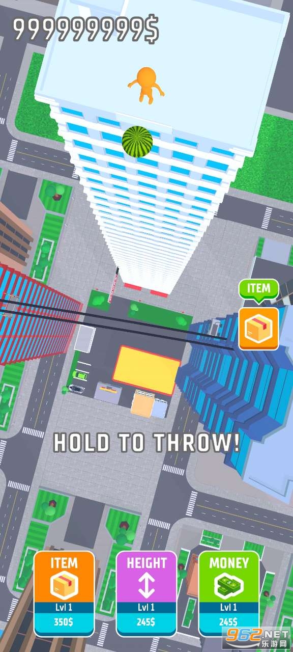 一款超解压的高空抛物游戏,游戏中你将在高楼的天台上不断的投掷各种物品,在空中砸到更多的东西造成更大的破坏就能够获得更多的奖励,当然在现实中高空抛物是非常危险不负责任的行为,所以想要扔东西就来这款游戏里吧。