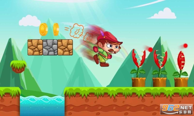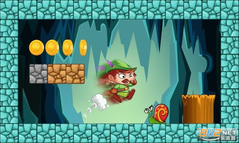 3、只需要控制小男孩前进或后退,还有跳跃键,尽量的收集更多硬币和道具。